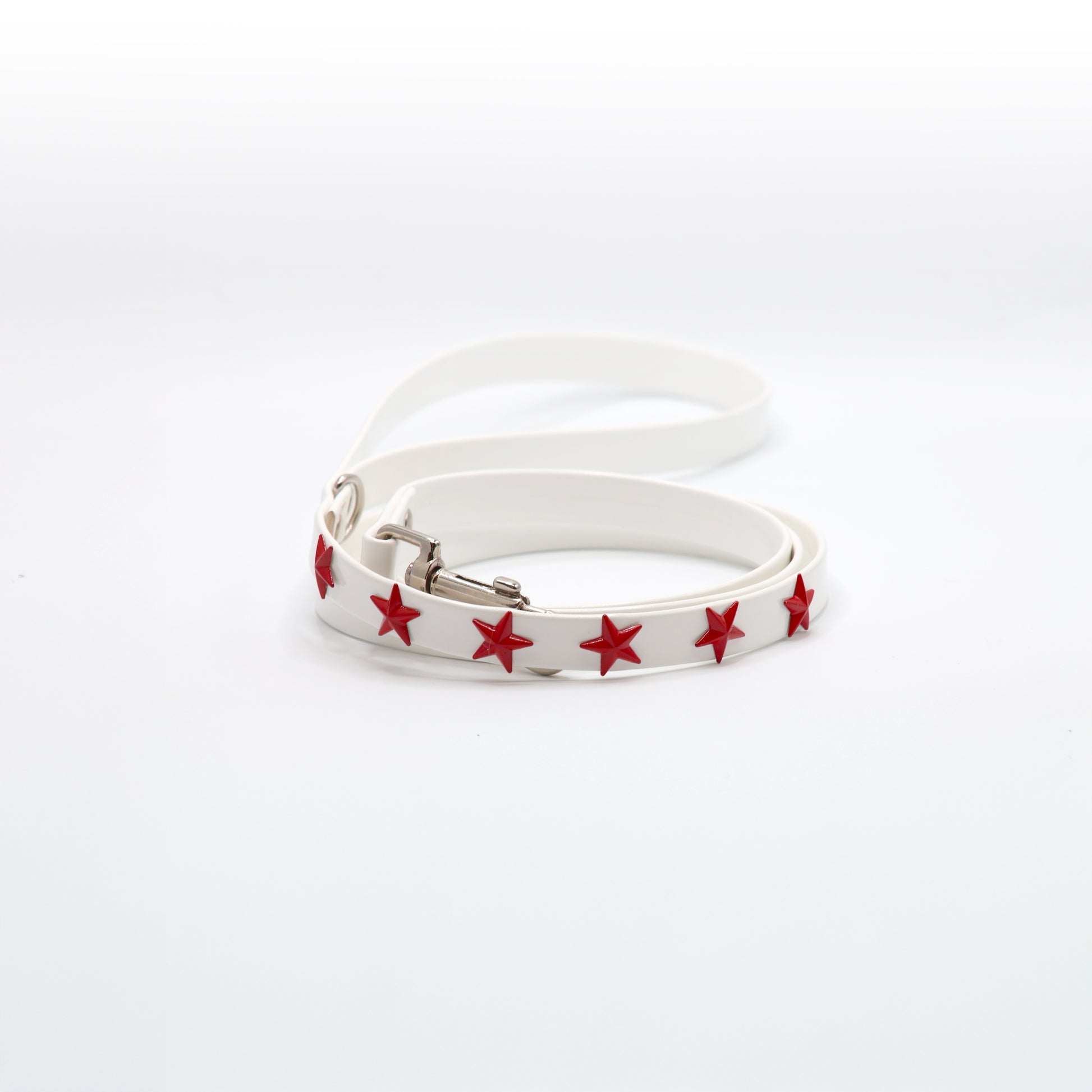 CHRISTMAS COLLECTION - Guinzaglio in ecopelle bianco con stelle rosse - Fatto a Mano